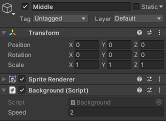 배경 스프라이트마다 스크립트를 넣고 속도값을 다르게 적용