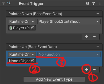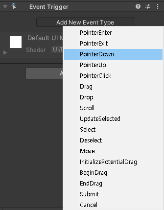 Add New Event Type에서 PointerDown, PointerUp 추가