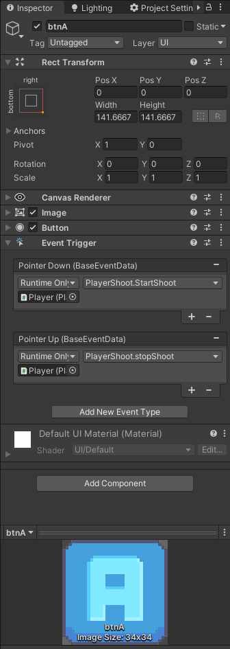 UI - Button을 생성후 이미지를 변경해주고 Add Component에서 Event Trigger 추가