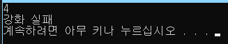 //만약에 임의의 값이 5보다 같거나 크면 강화성공을 출력하고