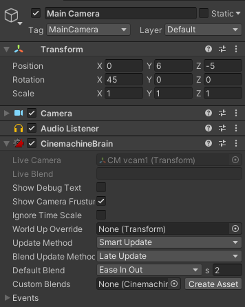Main Camera에 CinemachineBrain이 추가된다