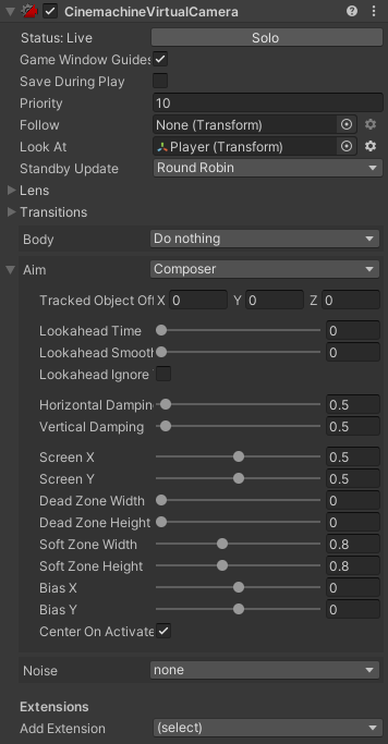 Look At칸에 카메라가 바라봐야 할 오브젝트를 추가