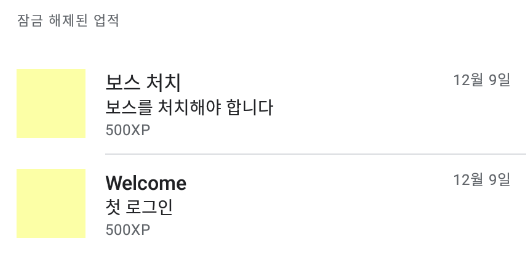 처음 테스트할 땐 잘 됐었는데 갑자기 업적이 없다고 뜬다