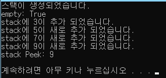 Console.WriteLine("stack에 {0}이 추가 되었습니다.", value);