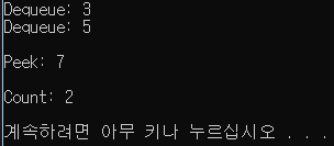 Console.WriteLine("Peek: {0}", queue.Peek());